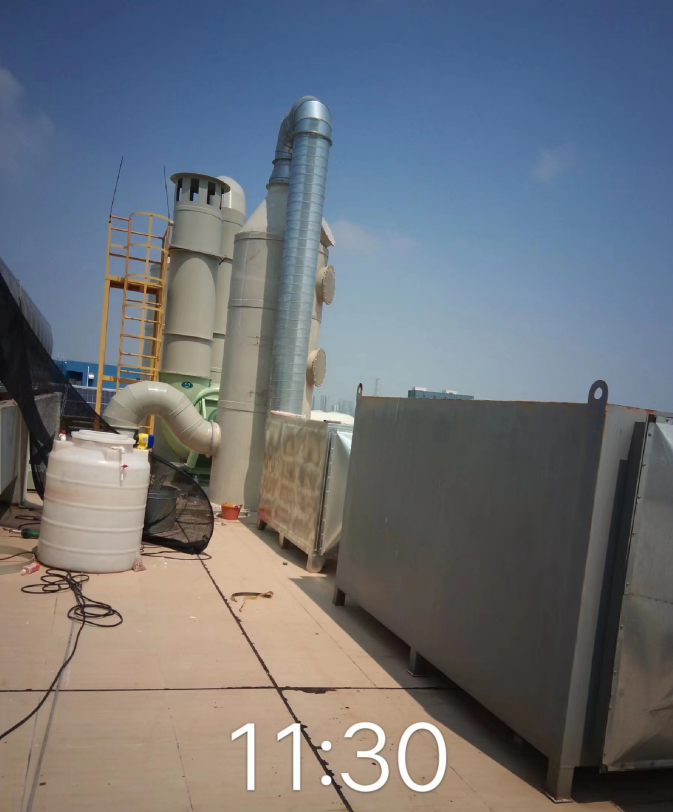 廣東久藍環保是廣東東莞地區一家voc廢氣處理廠家,10月6日,為東莞電子企業進行酸堿廢氣處理,該項目為電子廠voc廢氣治理,企業有一定的生產規模,處理廢氣的風量在20000㎡/h,我司為企業定制pp噴淋塔兩個;活性炭吸附箱一個;離心風機和配套的管道,到現場進行施工安裝,經過調試,設備正常運行,并達到排放標準。