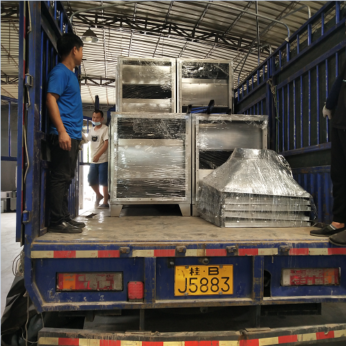 由廣東久藍環保生產的這批活性炭吸附箱參數為:處理風量10000m3/h,制作材質不銹鋼201,產品尺寸:1670*1015*1280,發蘭口徑:830*970,抽屜規格和個數:1010*610/4個,過濾面積:2.4㎡,裝碳量:蜂窩活性炭240個。