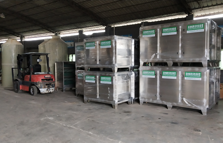 2022年6月27日,由廣東久藍環保生產制造的酸霧廢氣處理設備組合,該組設備由兩個酸霧塔、三個活性炭吸附箱和配套風管組成,主要是處理家具廠的酸霧廢氣,處理風量15000m3/h,幫助用戶達到標準排放的效果。
